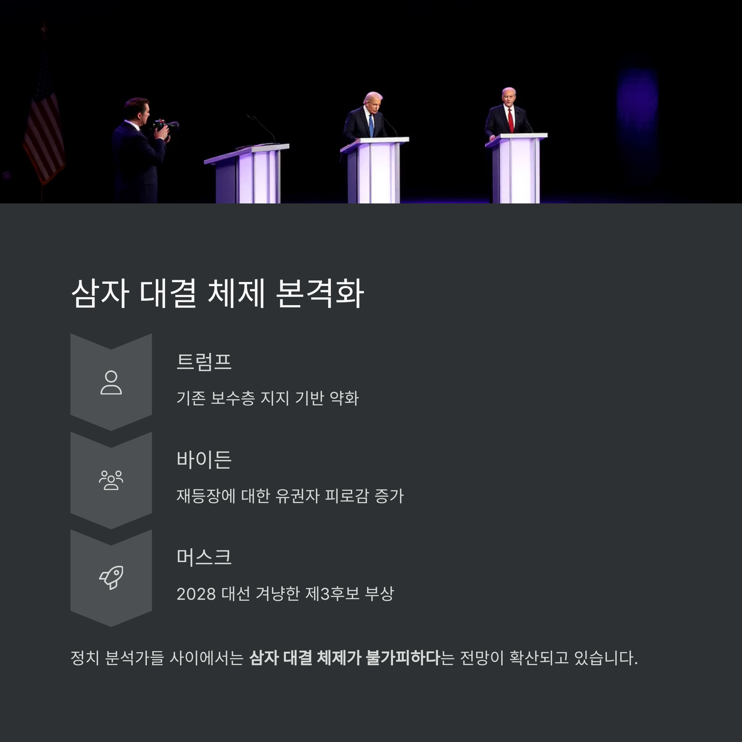 삼자 대결 체제 본격화… 트럼프 vs 바이든 vs 머스크