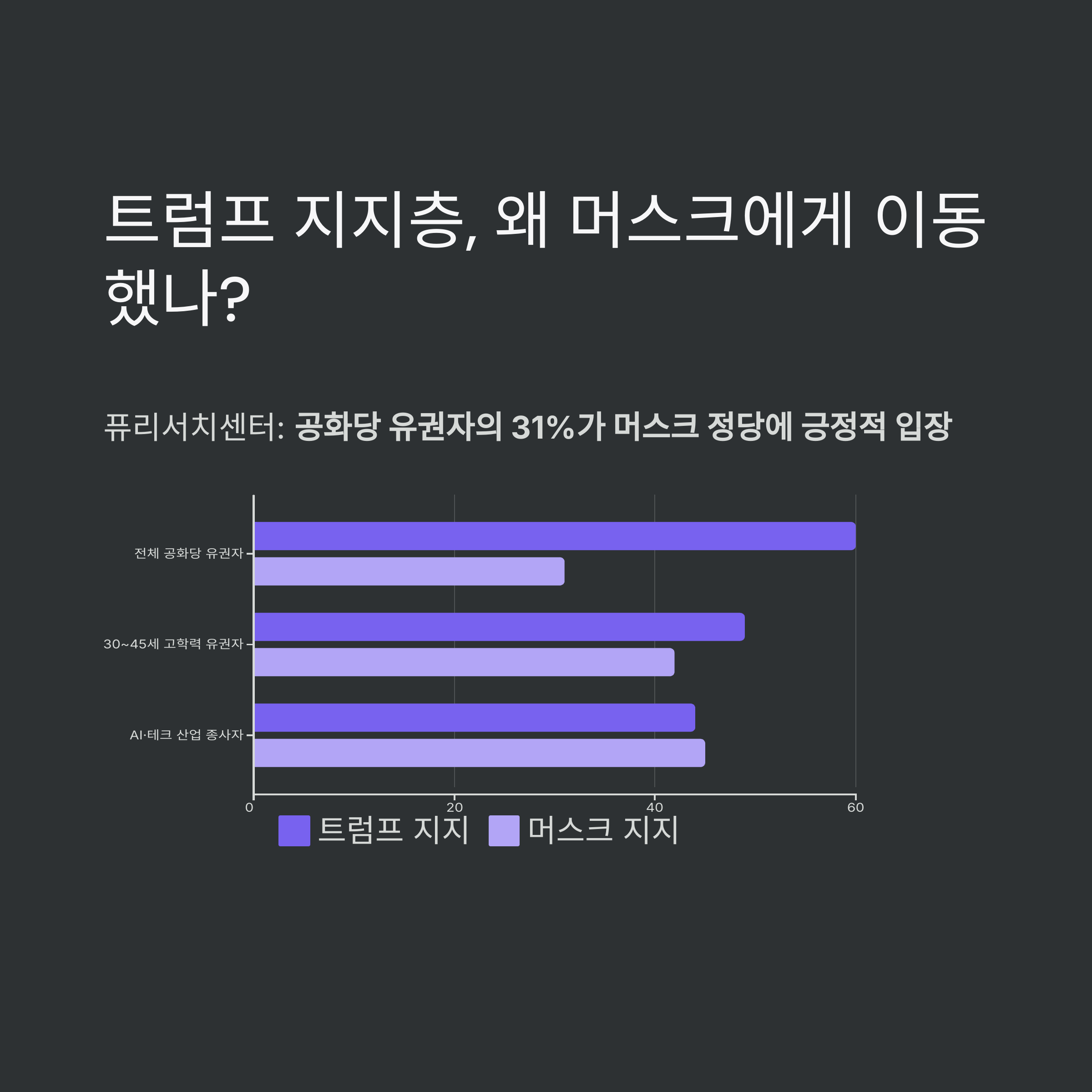 특히 보수적이면서도 ‘경제 중심 성향’이 강한 유권자들이 머스크를 대안으로 삼기 시작했습니다.