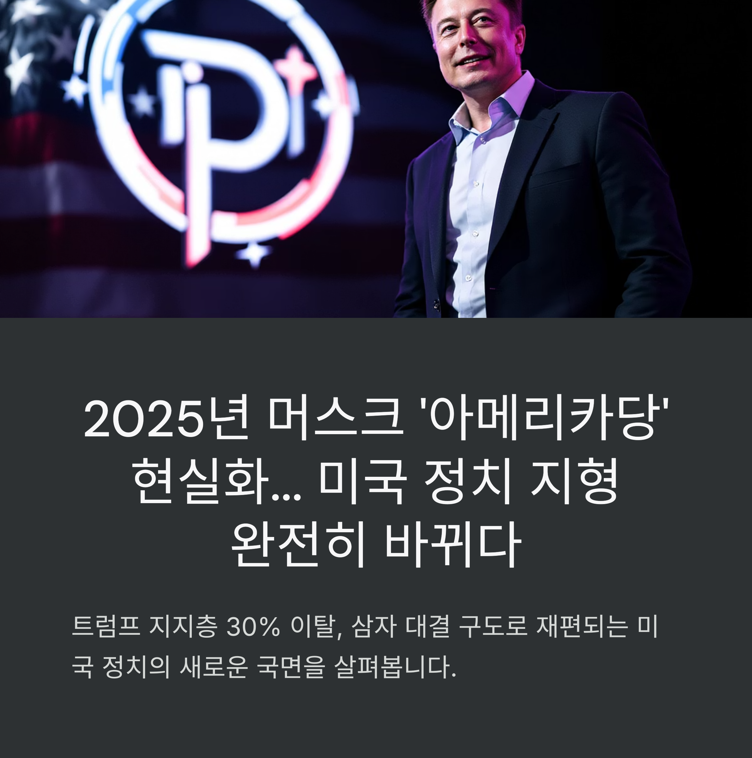 2025년 6월, 일론 머스크가 주도하는 ‘아메리카당(America Party)’은 더 이상 가능성의 영역이 아닙니다.