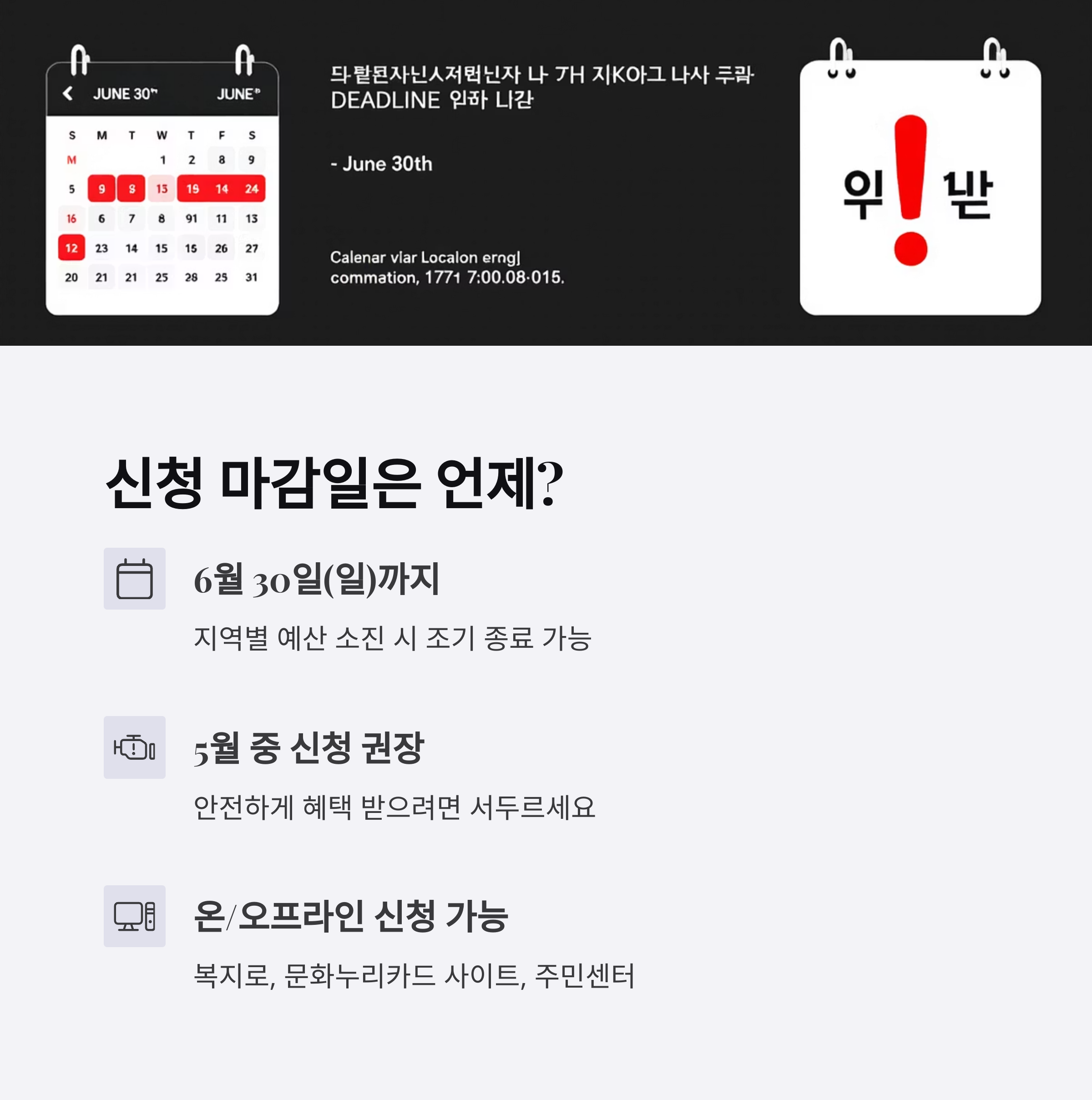 신청 자격이 되는 분들은 6월 30일 이전에 반드시 신청해 두셔야 합니다.