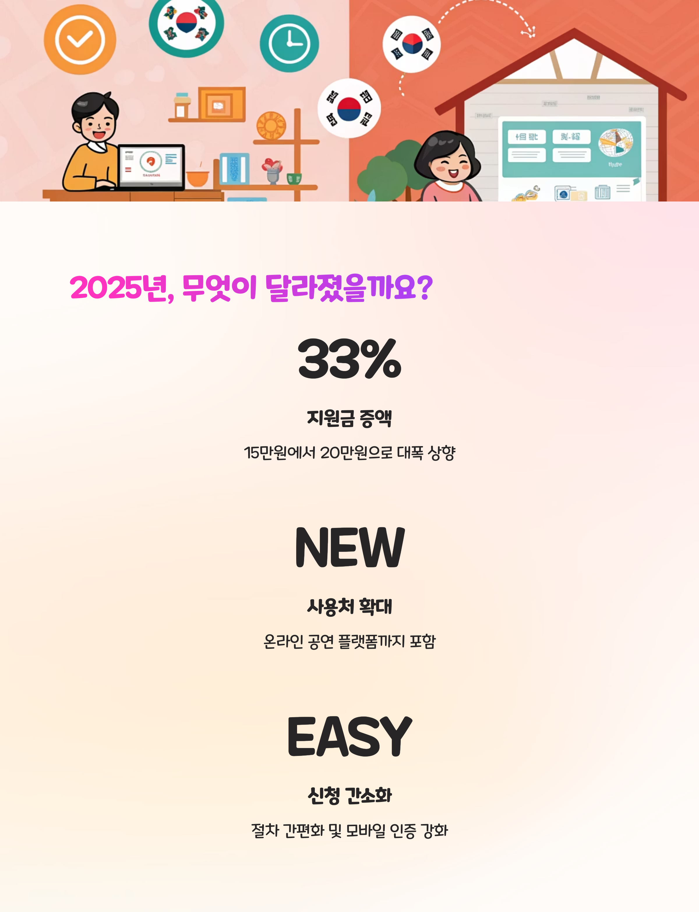 2025년에는 지원 금액과 대상이 확장되어 더 많은 사람들이 혜택을 받을 수 있게 되었어요.