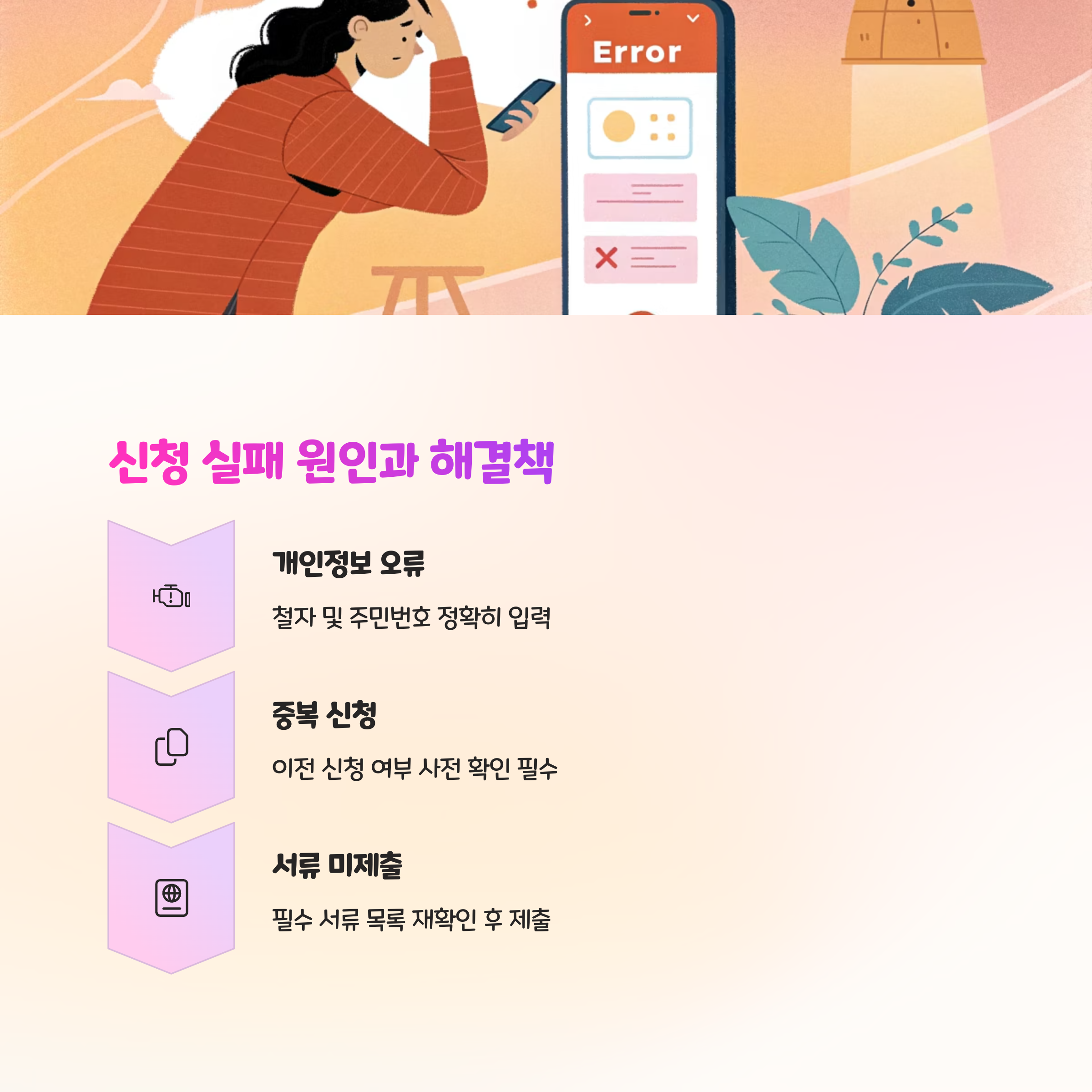 신청 과정에서 가장 많이 발생하는 문제는 다음과 같습니다.