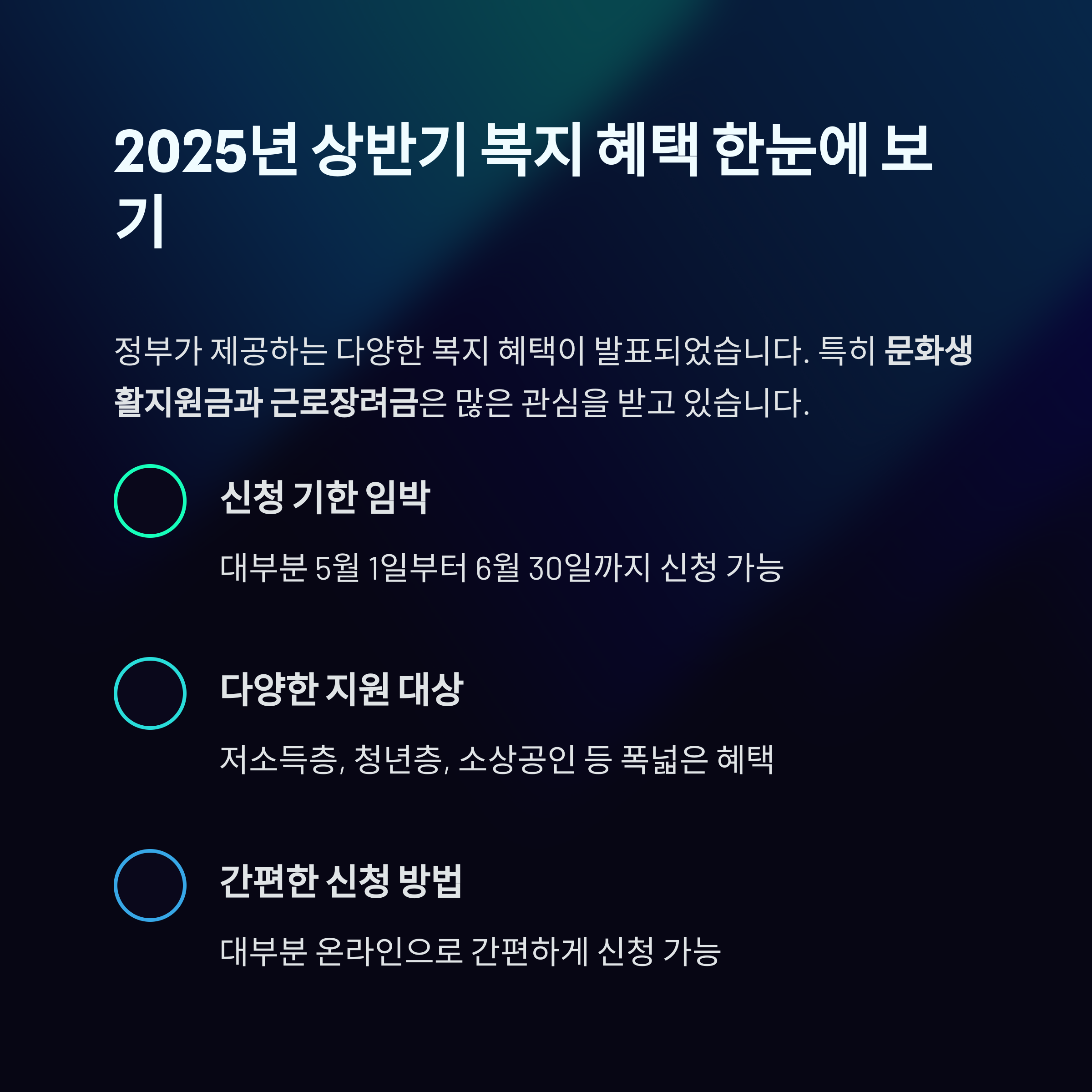 2025년 상반기, 정부가 제공하는 다양한 복지 혜택이 발표되었습니다.
