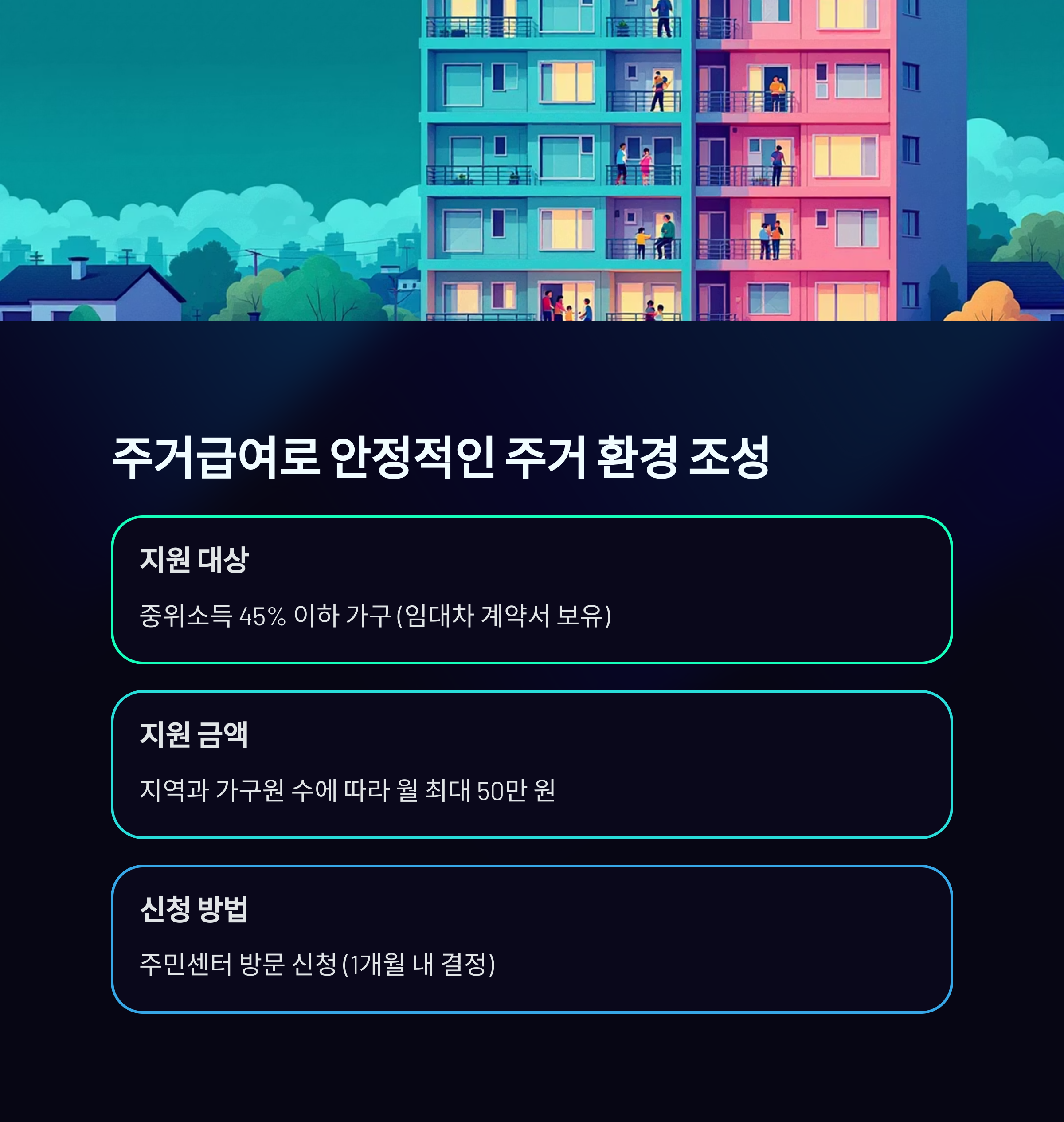 | 주거급여 | 상시 | 월 최대 50만 원 | 주민센터 |