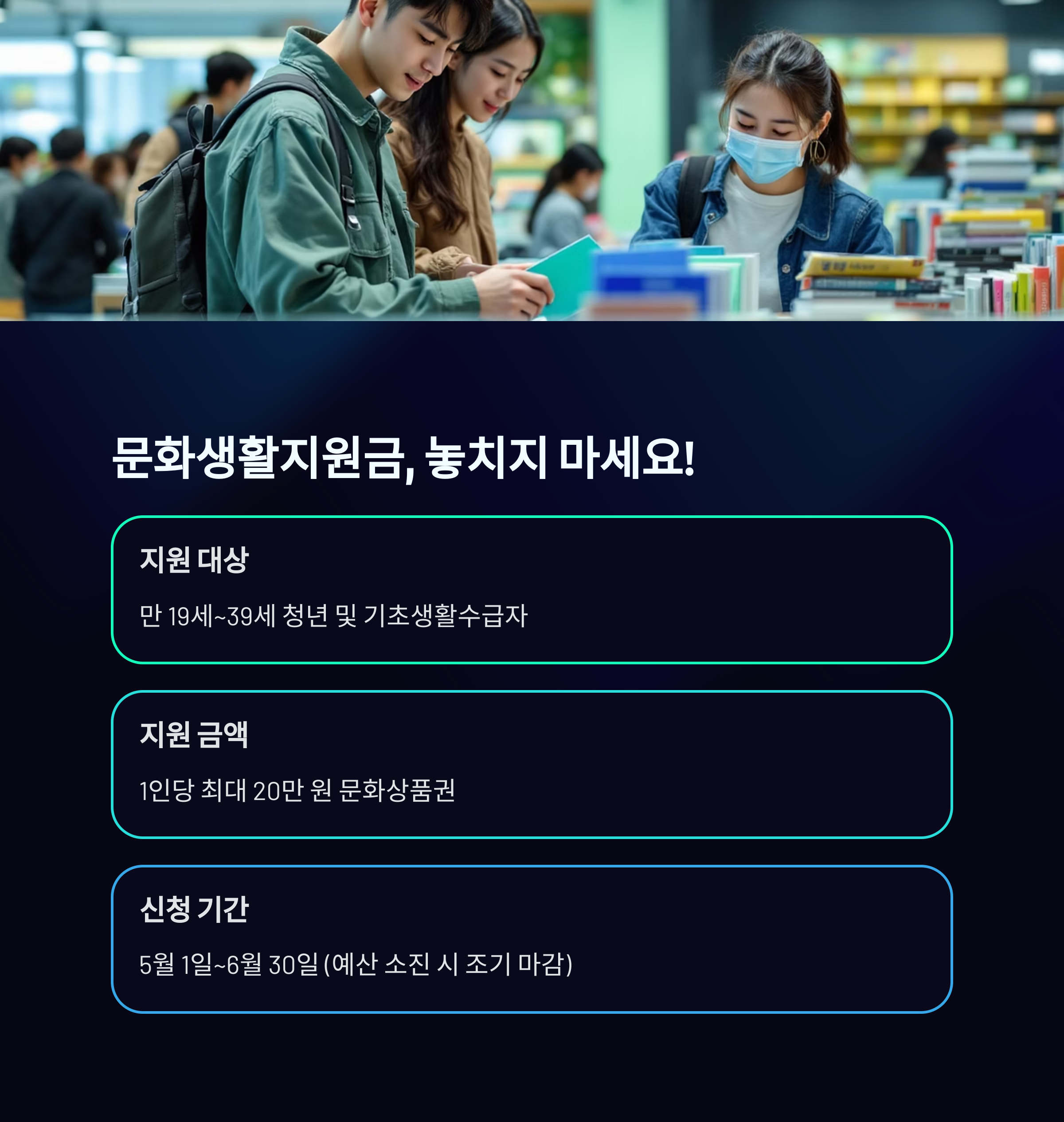 2025년 문화생활지원금은 저소득층과 청년층을 대상으로 한 특별 지원금입니다.