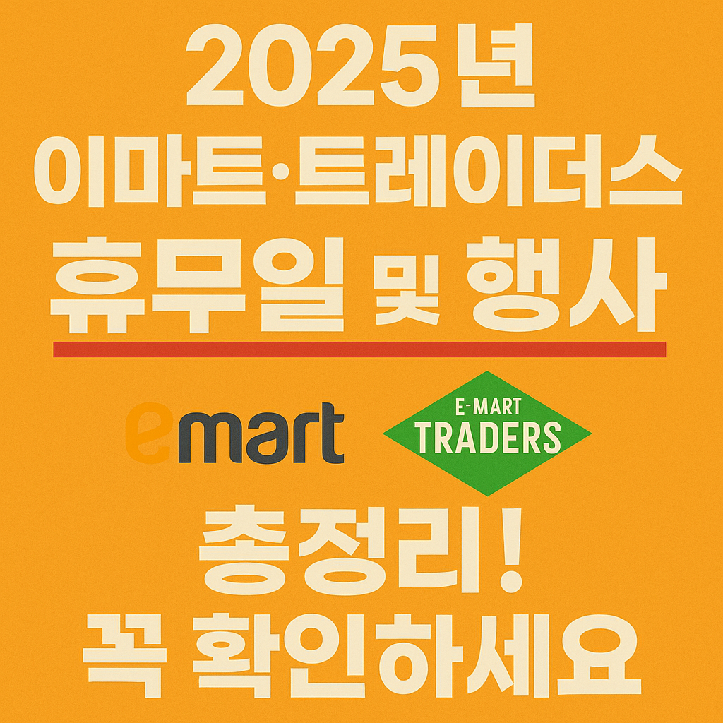 2025년 이마트와 트레이더스의 정기 휴무일과 월별 행사 정보를 한 번에 정리해 드릴게요.