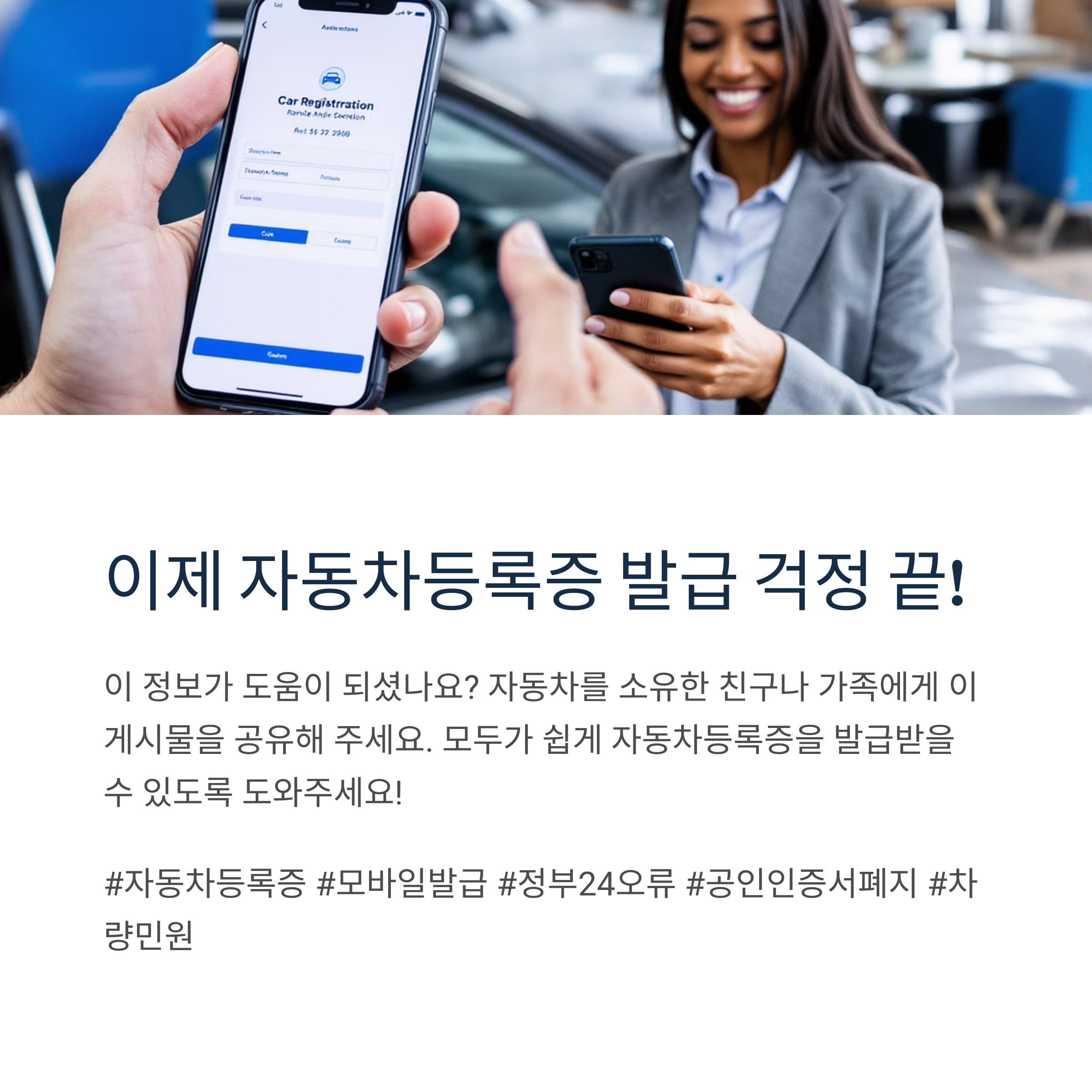 자동차등록증을 한번 발급 받은 후, 모바일에 저장해 두는 것이 중요합니다.