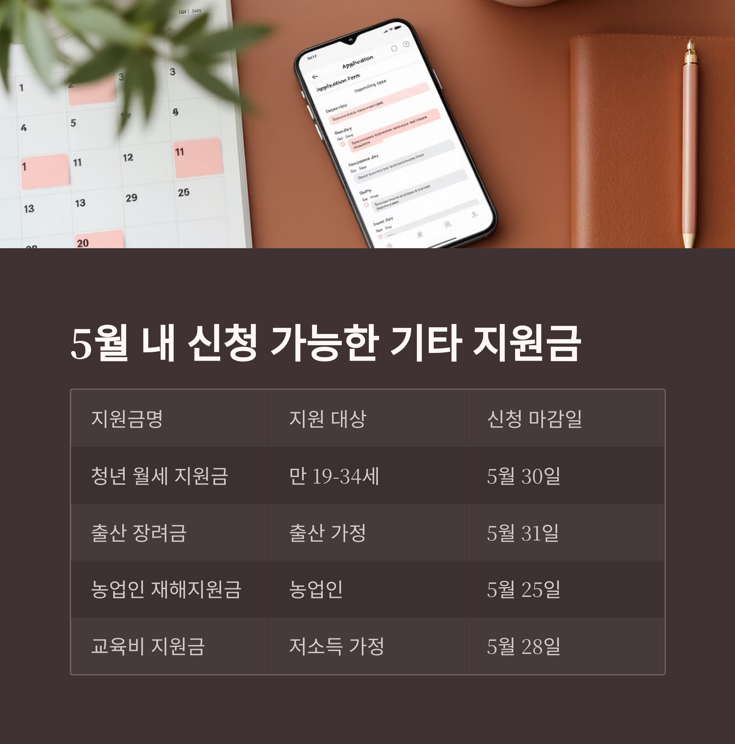 5월 내 신청 가능한 기타 지원금