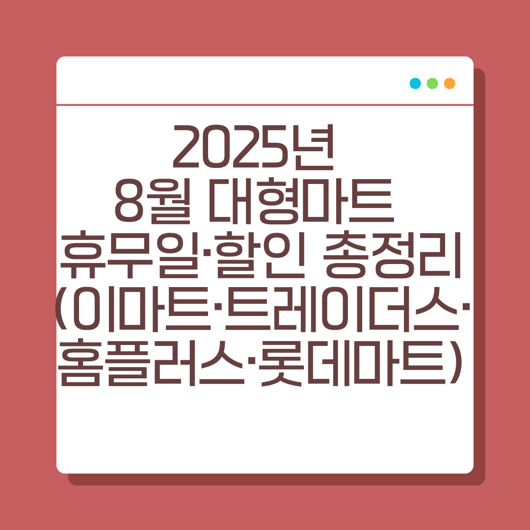 이 글에서는 2025년 8월의 이마트, 홈플러스, 롯데마트, 트레이더스 휴무일과 할인 일정을