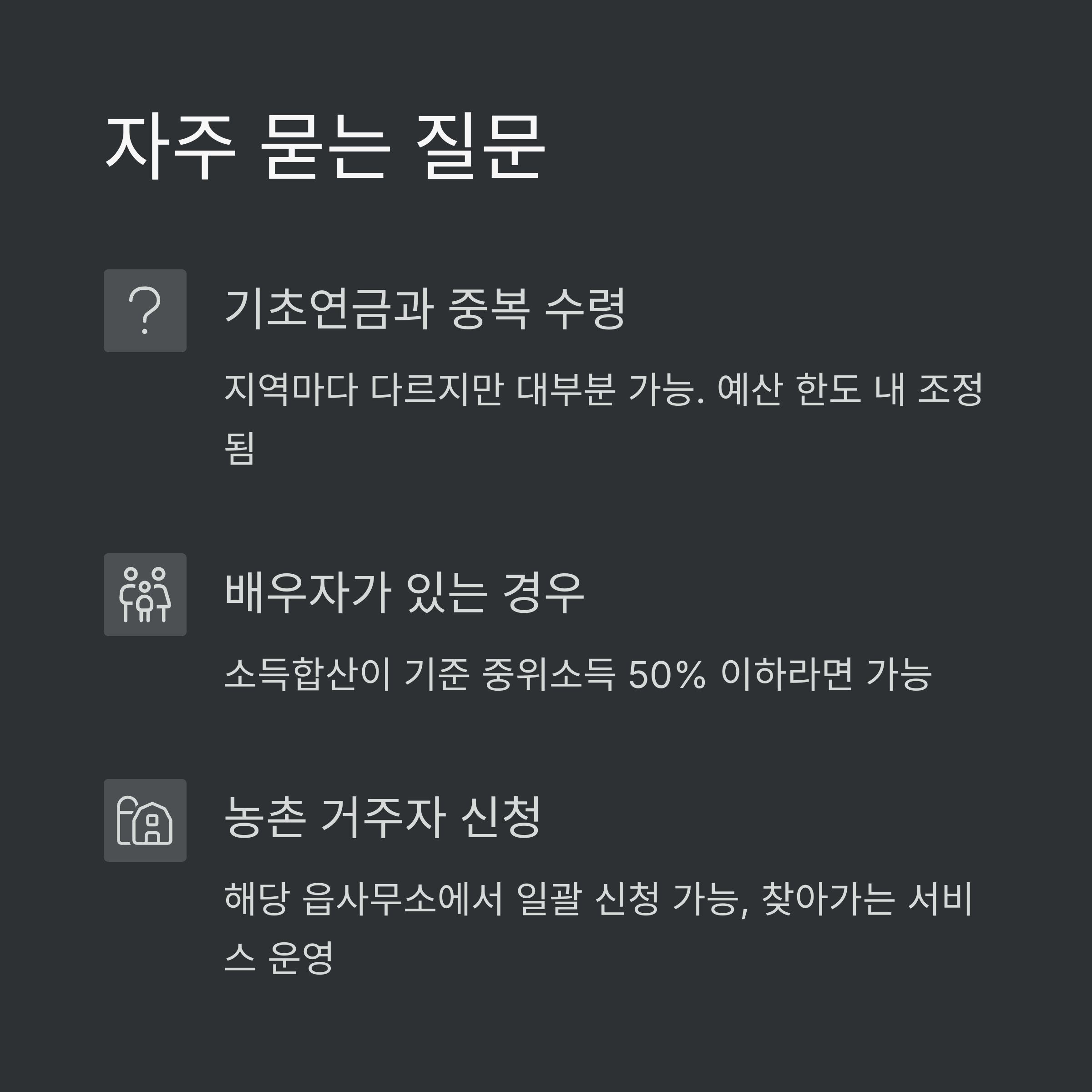 예: 경남 거창군은 2025년부터 ‘고령농업인 복지수당’으로 월 5만 원 추가 지원 시행