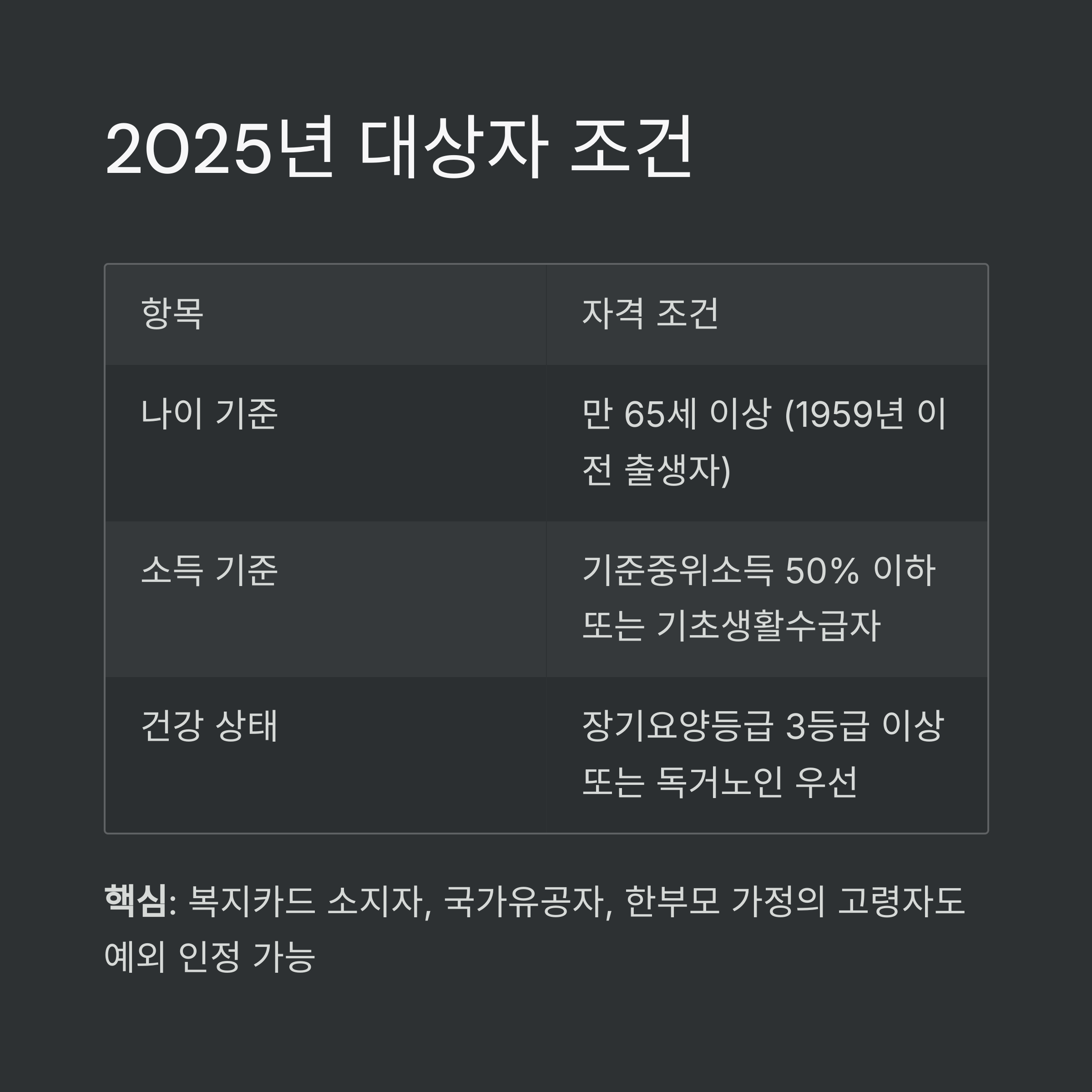 아래 표를 통해 2025년 최신 대상자 기준을 확인하실 수 있습니다.