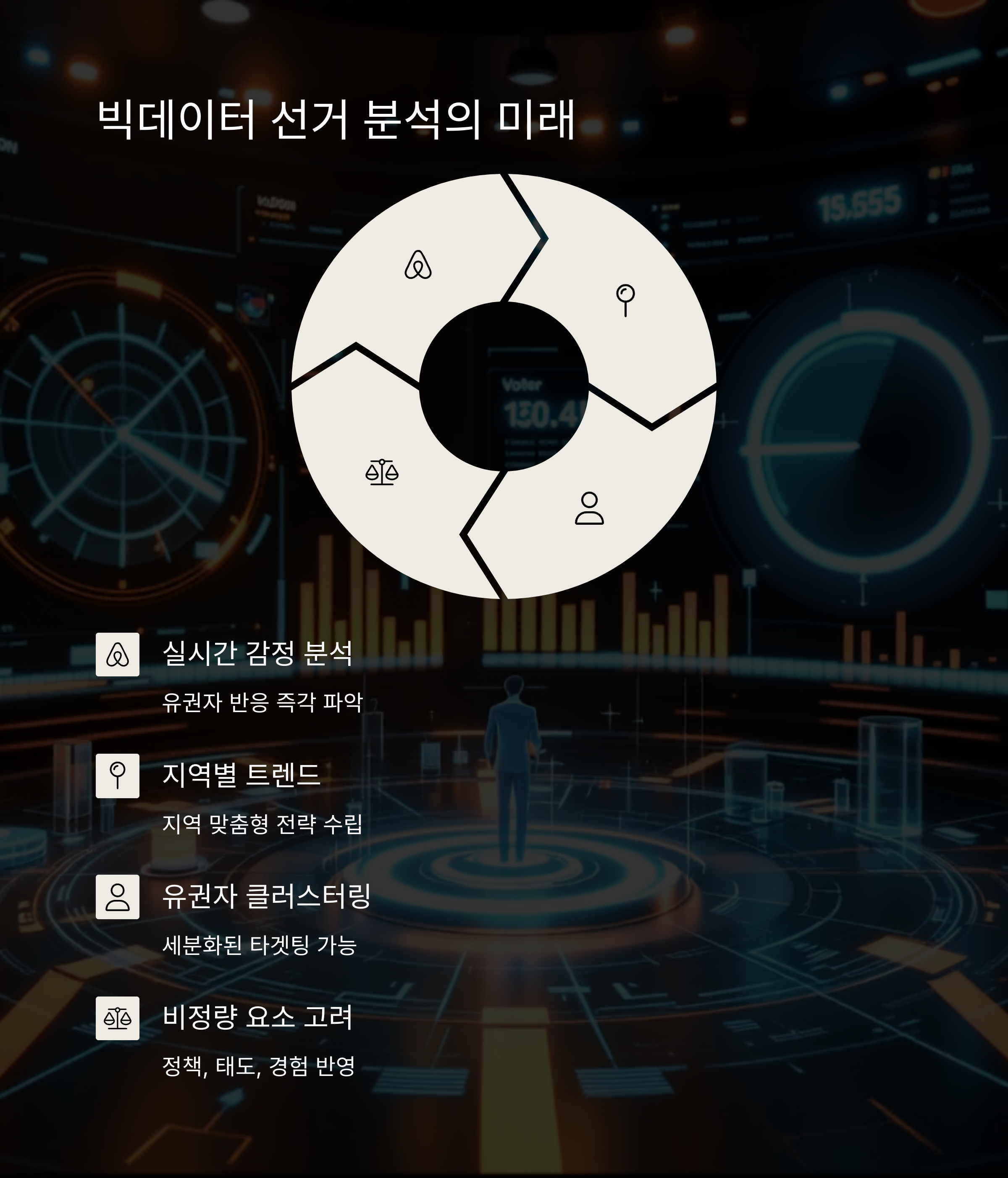 그러나 수치 중심의 '보이는 데이터'만 믿는 것은 위험할 수 있으며, 정책, 후보의 태도, 정치 경험 등 비정량 요소의 중요성도 함께 고려해야 정확한 선거 예측과 분석이 가능해집니다.