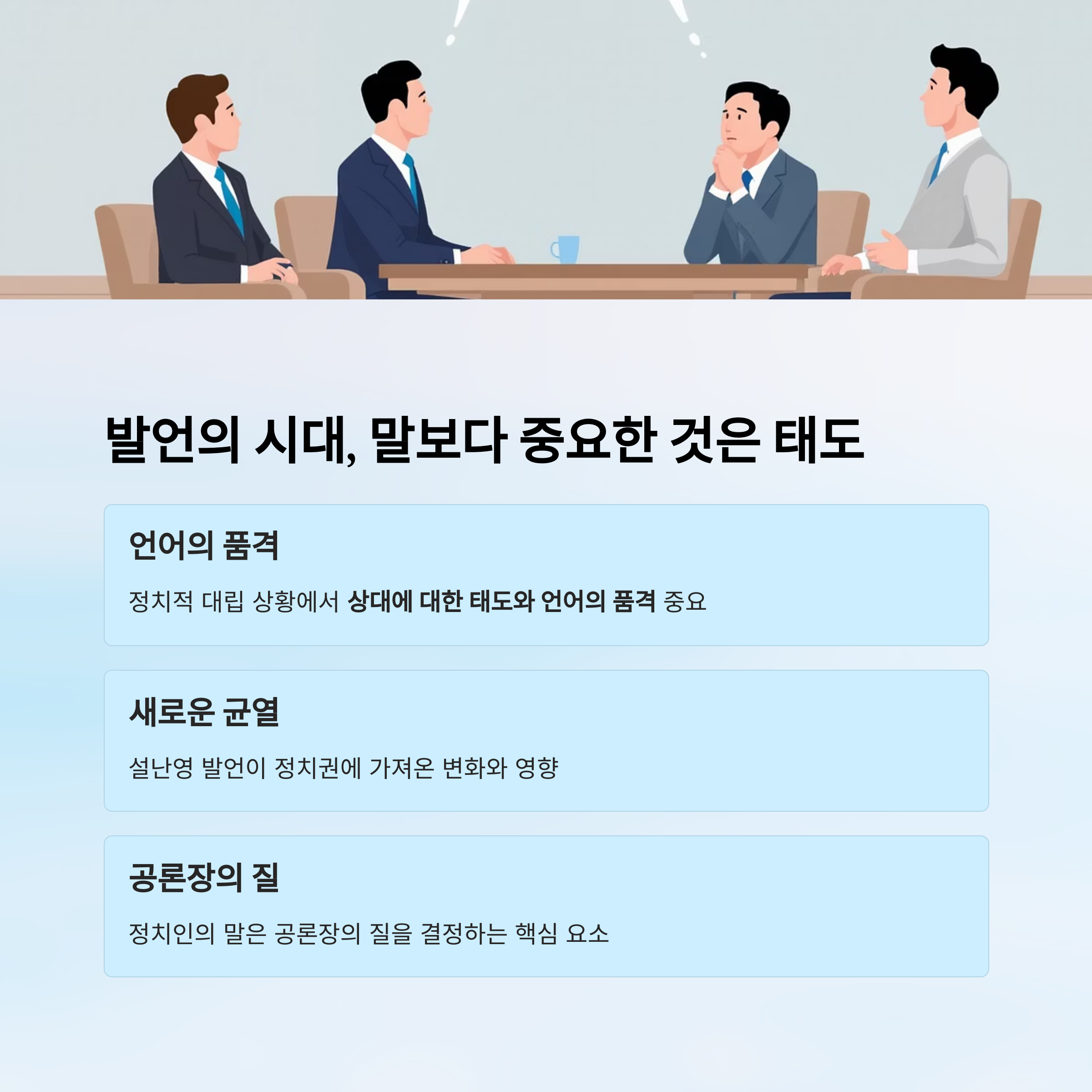 정치인의 말은 단순한 소음이 아닌, 공론장의 질을 결정하는 요소입니다.