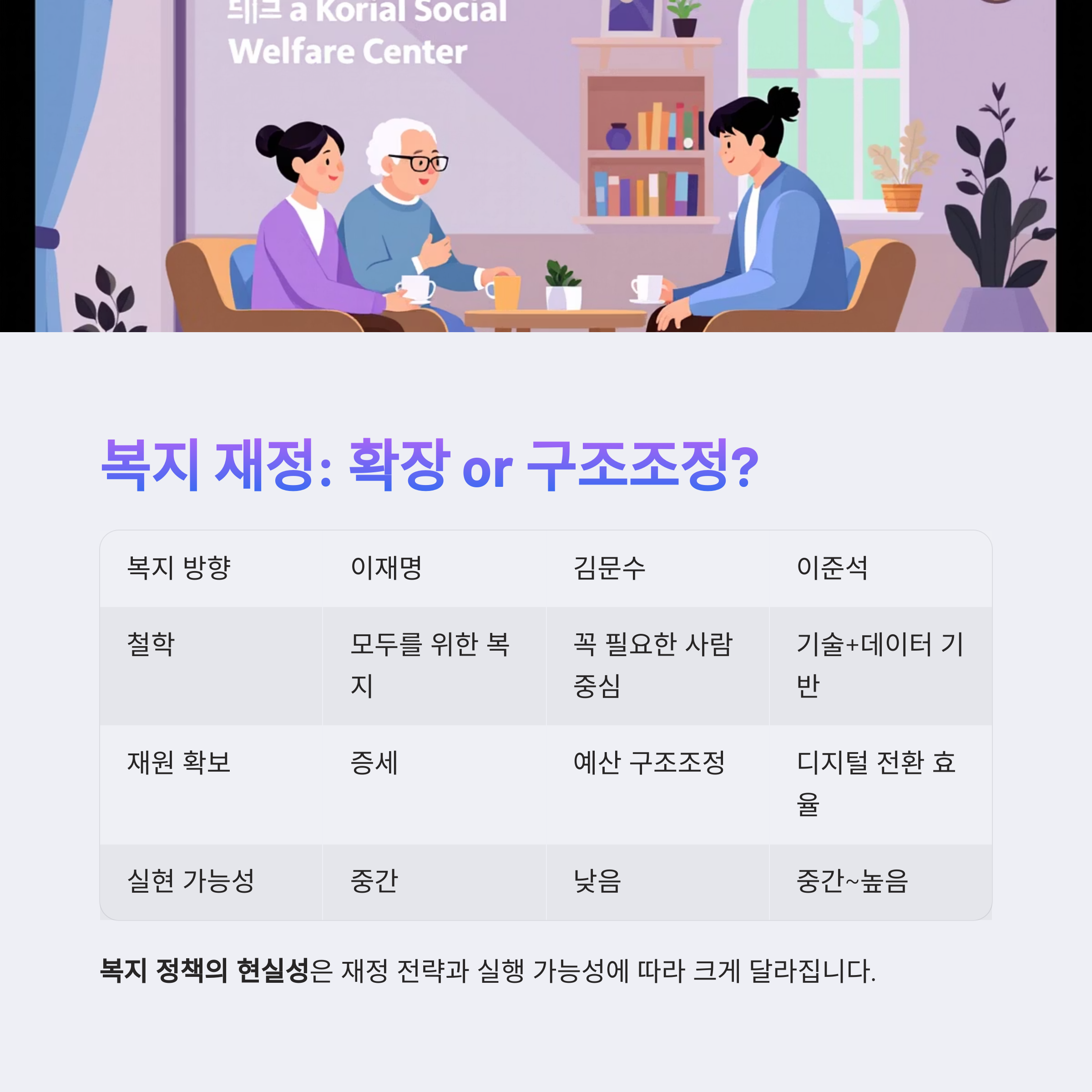 복지 정책의 현실성은 후보별 재정 전략과 실행 가능성에 따라
