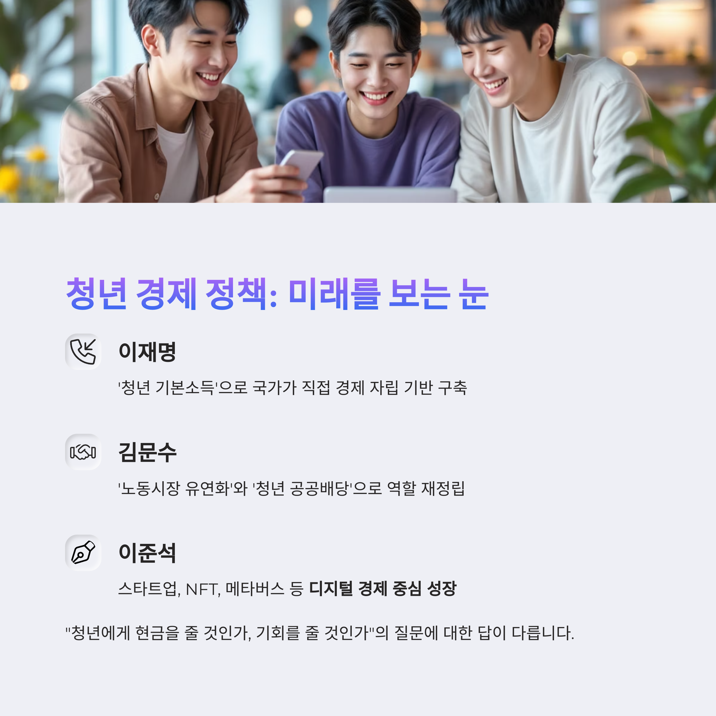 - 이준석 후보는 청년 중심·기술 기반·유연한 경제체계를 제시합니다