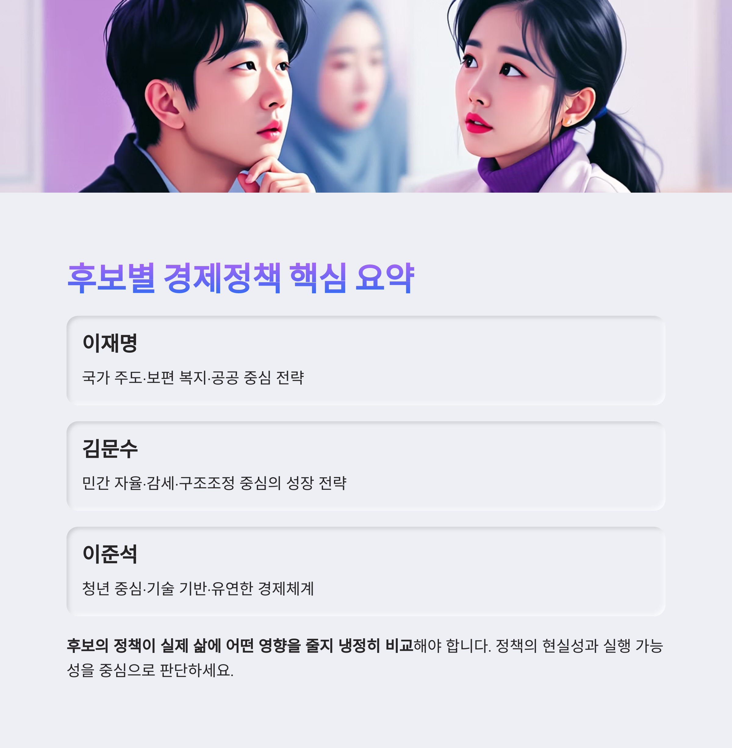 이번 글에서는 이재명, 김문수, 이준석 후보의 경제정책을 비교하여