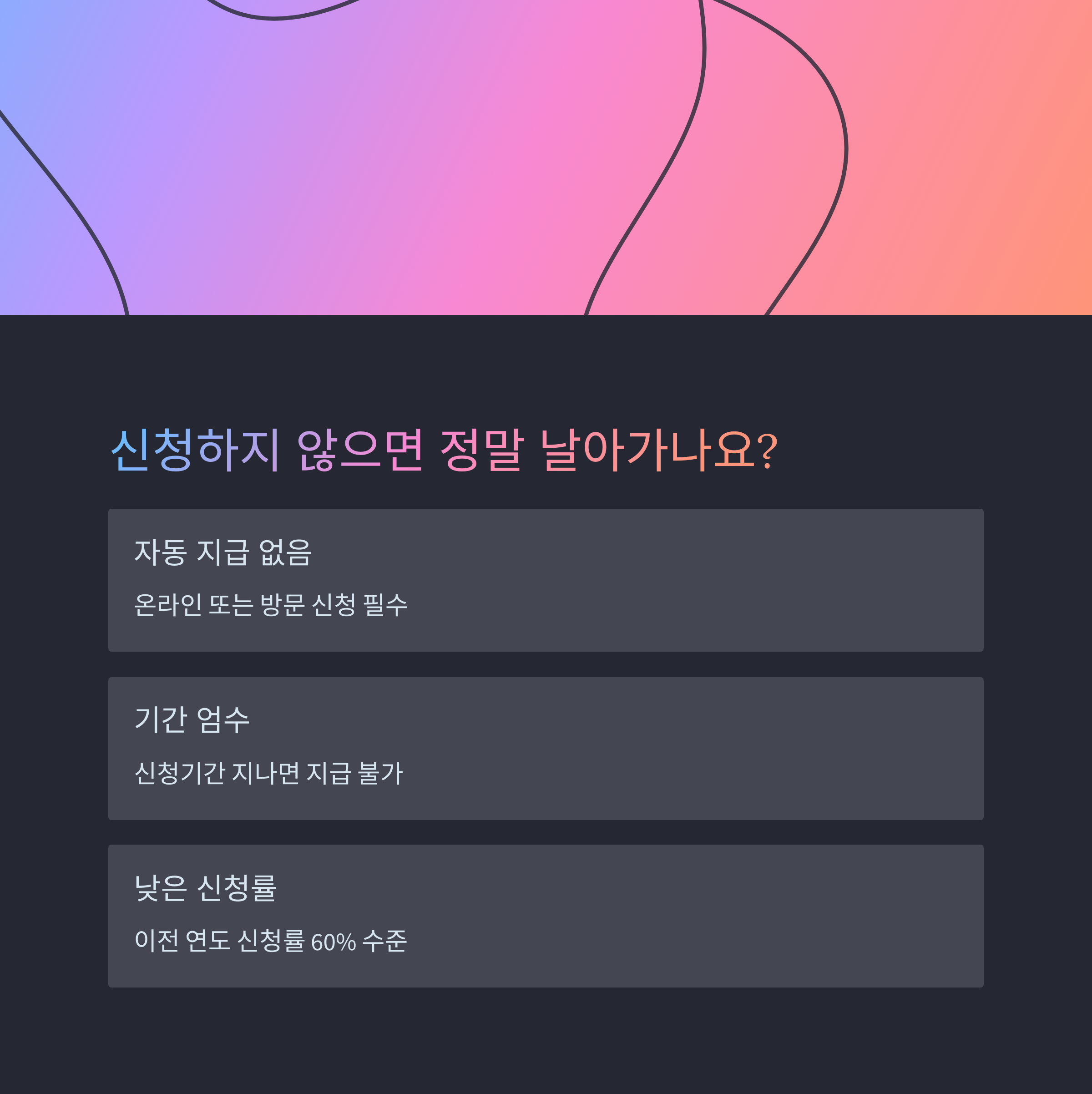 신청 누락으로 혜택을 못 받은 사례가 많았던 점에 유의해야 합니다.