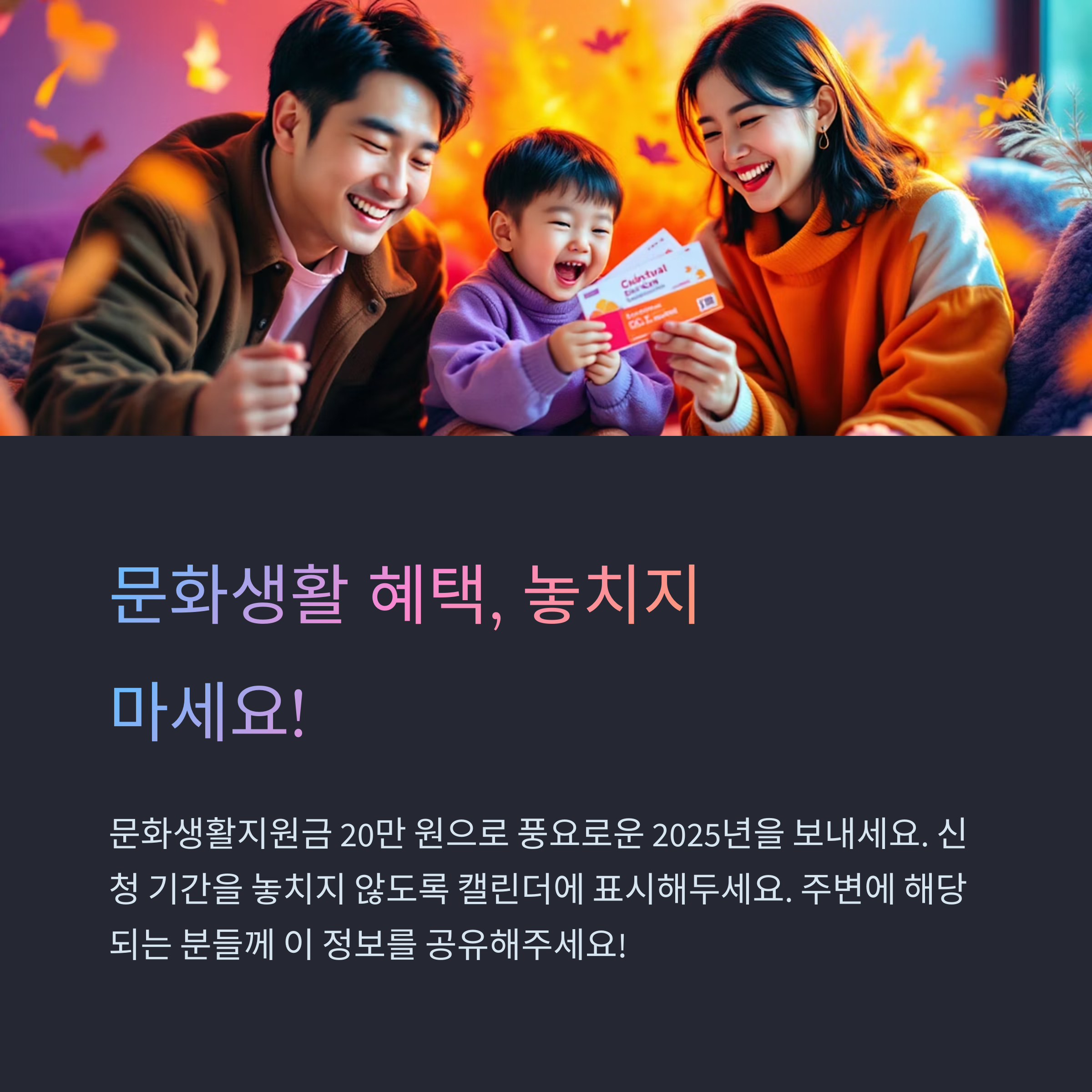 2025 문화생활지원금은 기초생활수급자, 차상위계층, 장애인 등을 주요 대상으로 합니다.