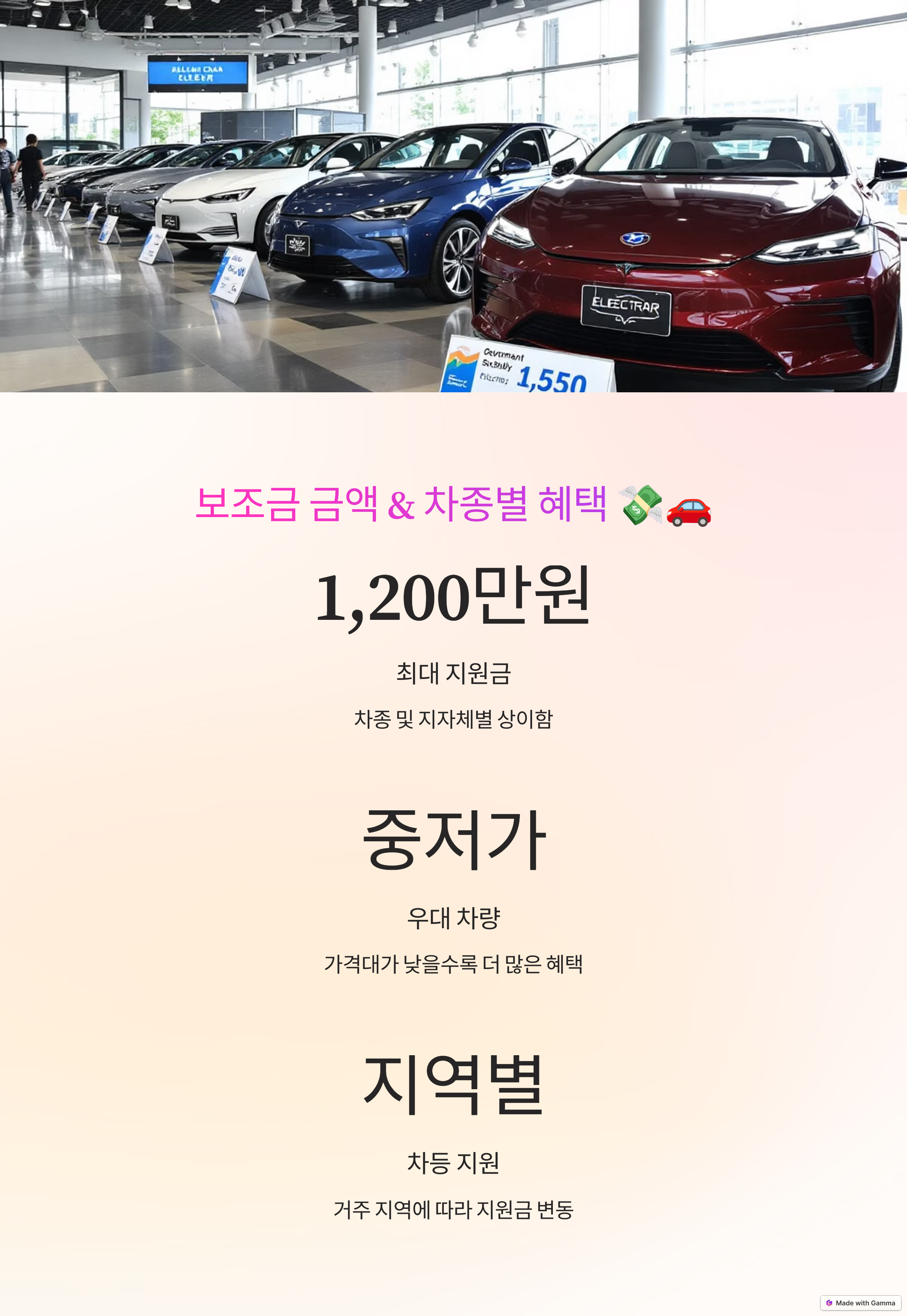 | 전기차 보조금이란? | 전기차 구매 시 정부와 지자체가 제공하는 구매 비용 지원 제도입니다. |