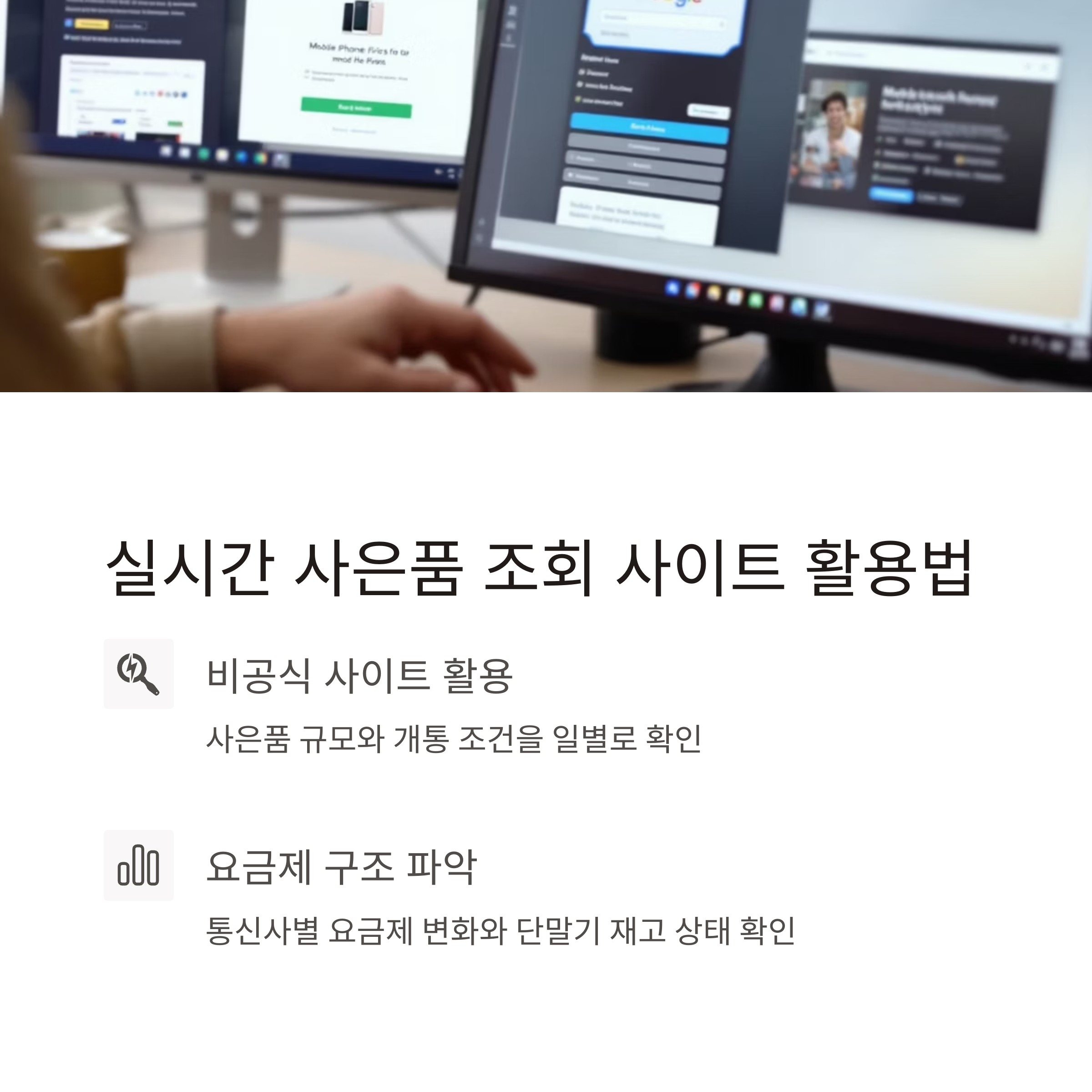 사은품 현황 외에도, 통신사별 요금제 구조 변화, 단말기 재고 상태도 함께 확인 가능하여
