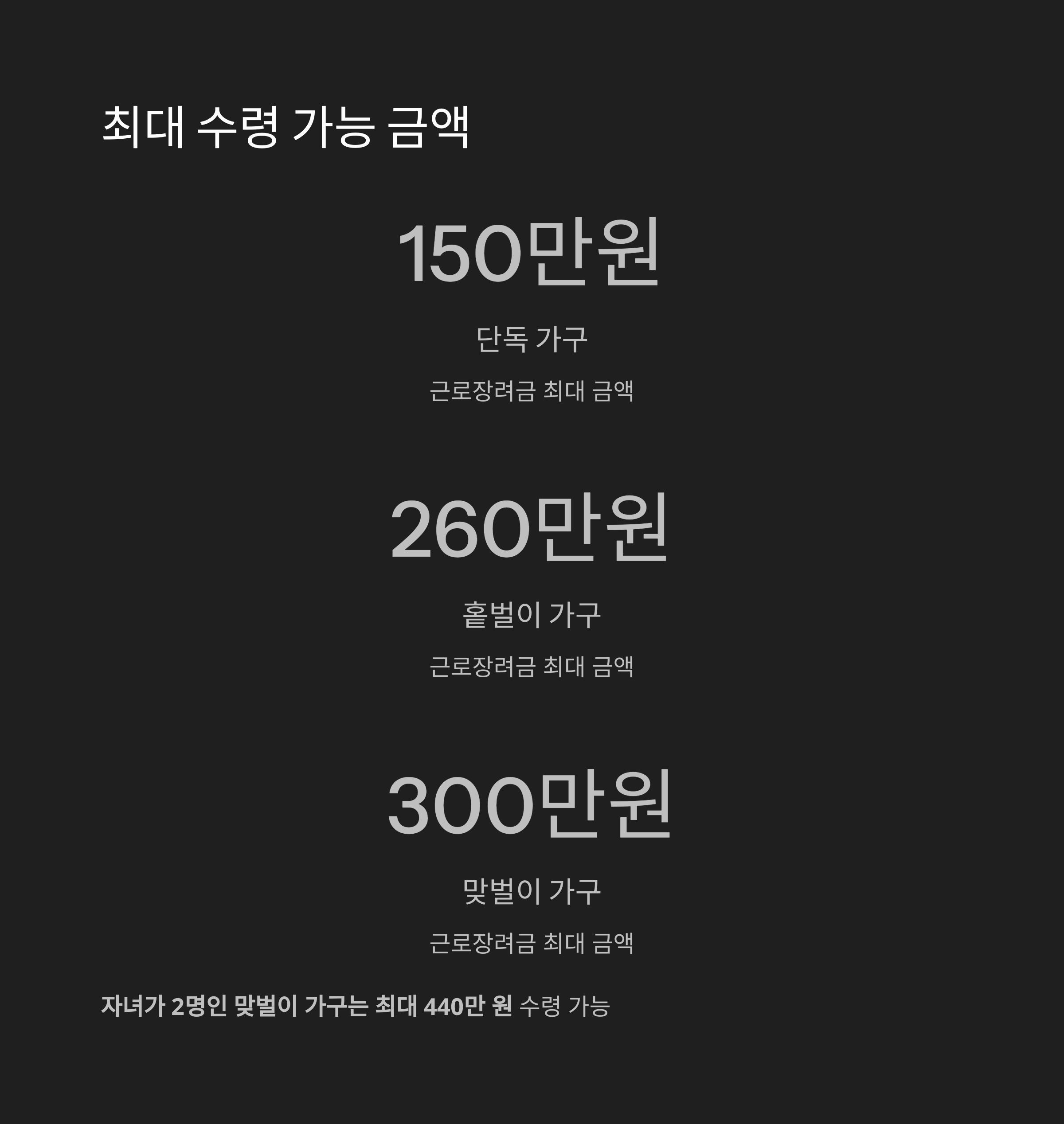 가구 유형 근로장려금 최대 금액 자녀장려금 최대 금액