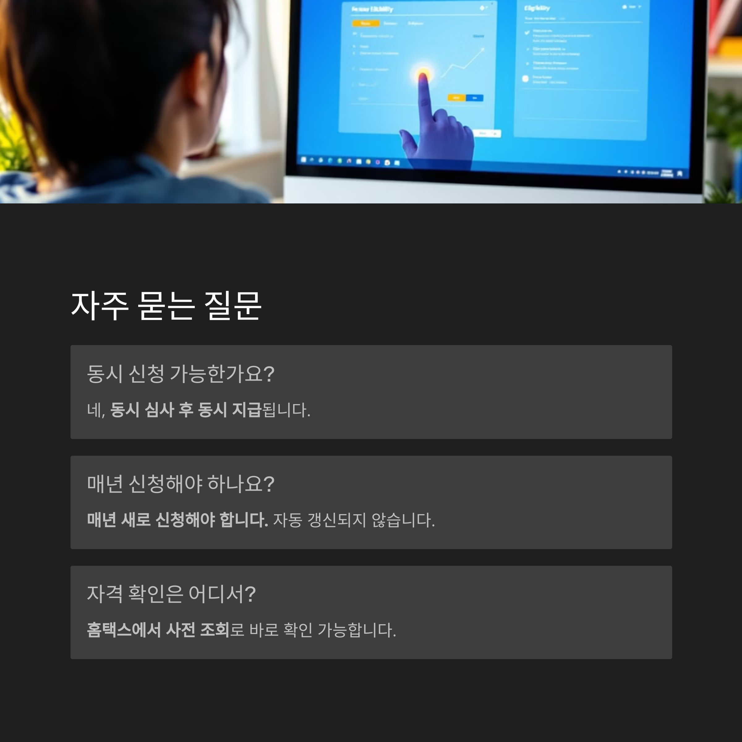 소득 요건과 재산 기준이 다소 까다롭기 때문에 신청 전 홈택스 또는 손택스에서 자격 조회를 반드시 해보셔야 합니다.