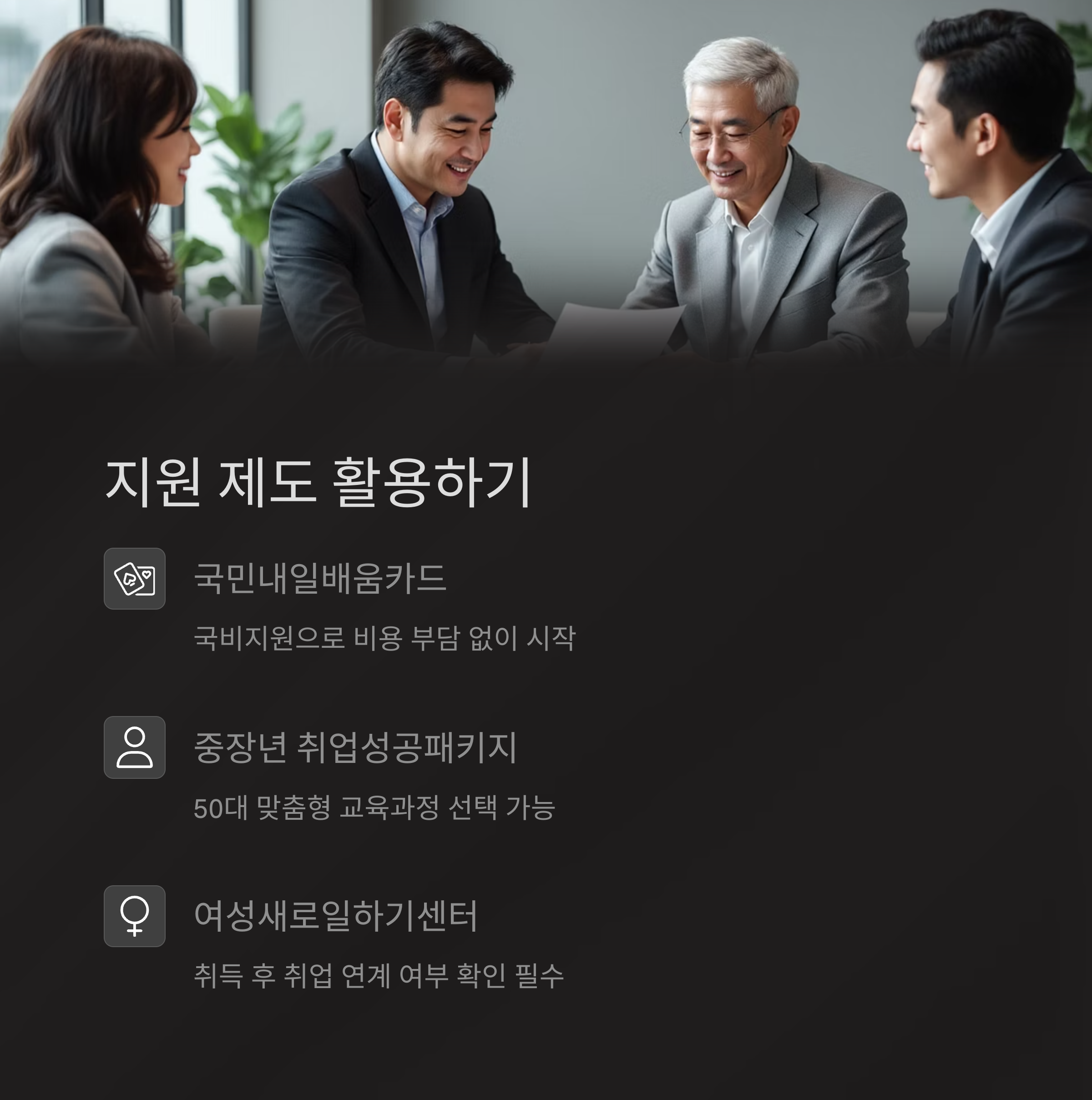 특히 50대에 적합한 자격증은 실무 중심, 단기 취득 가능, 고용 연계성이 중요합니다.