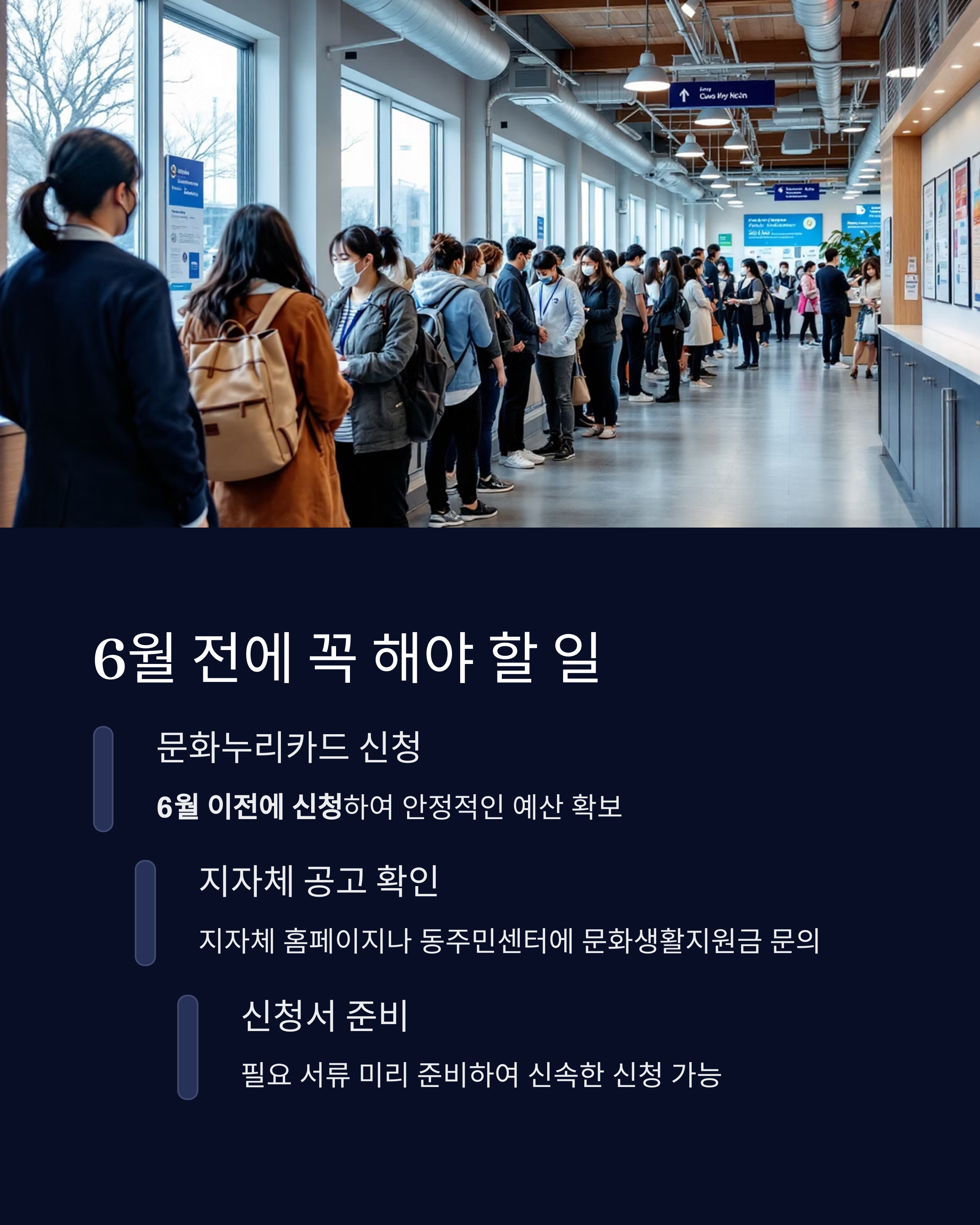 문화누리카드는 반드시 6월 이전에 신청을 마쳐야 안정적인 예산 확보가 가능합니다.