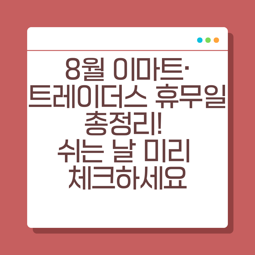 트레이더스의 8월 휴무일 정보를 정리해드립니다.