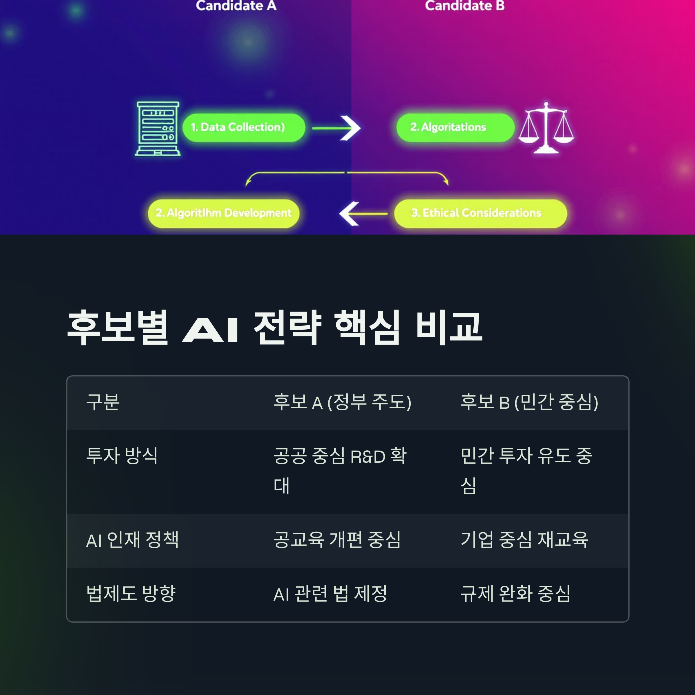 표 비교: 후보별 AI 전략 핵심 비교