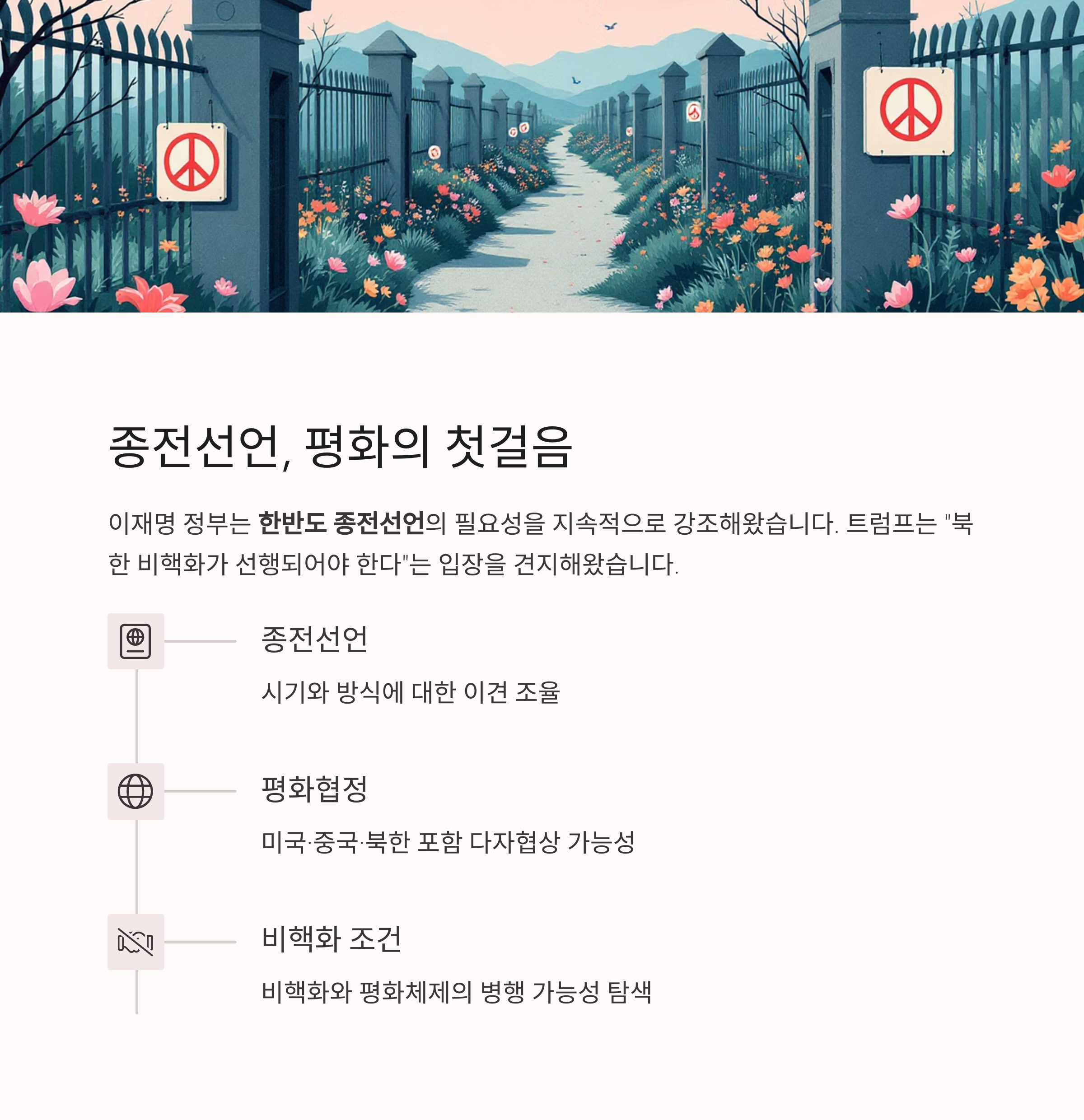 이재명 정부는 한반도 종전선언의 필요성을 지속적으로 강조해왔습니다