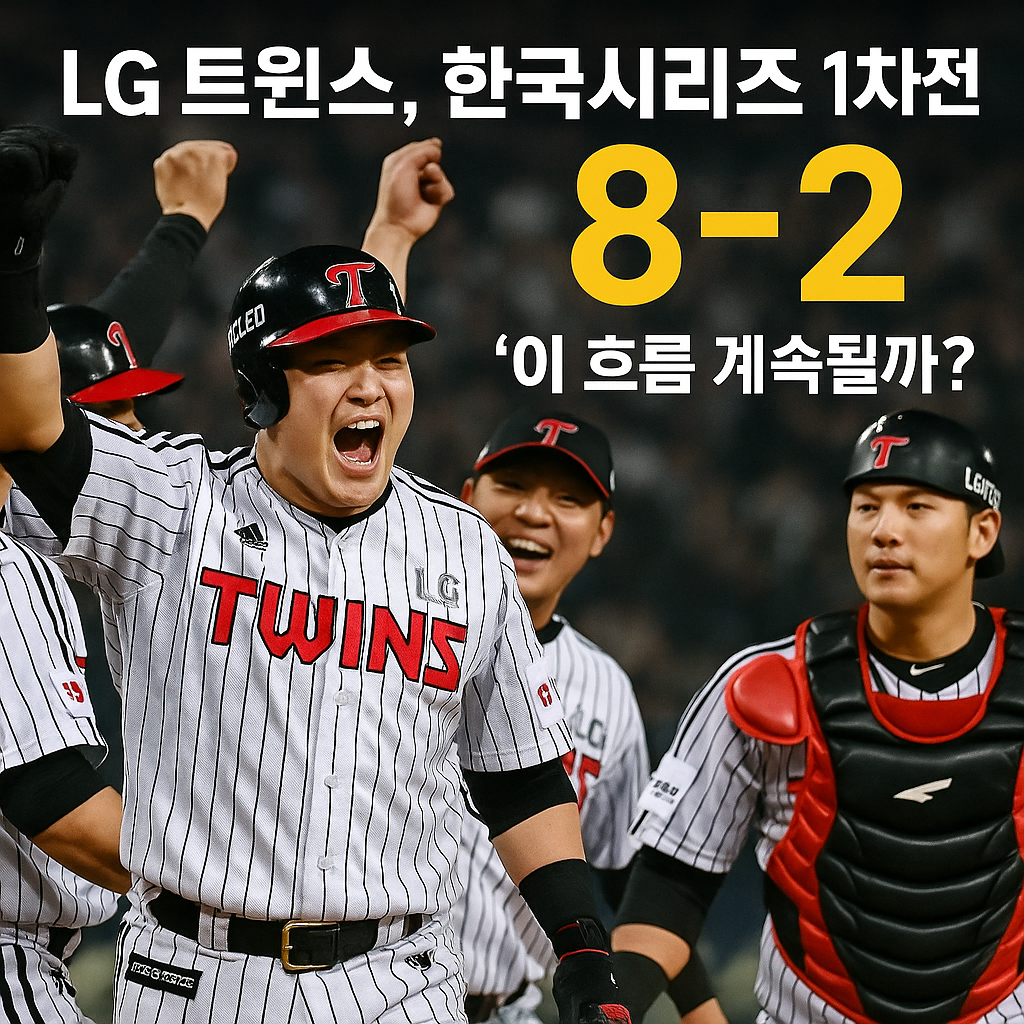 2025년 10월 26일, 잠실야구장에서 열린 한국시리즈 1차전에서 LG 트윈스가 한화 이글스를 8-2로 꺾으며 시리즈의 포문을 화끈하게 열었습니다. 초반부터 경기를 주도한 LG는 완벽한 투타 밸런스로 분위기를 가져왔고, 한화는 실책과 집중력 부족이 겹치며 고전했습니다. 이 글에서는 경기 흐름과 핵심 포인트를 짚어보고, 2차전 전망까지 정리해드립니다.