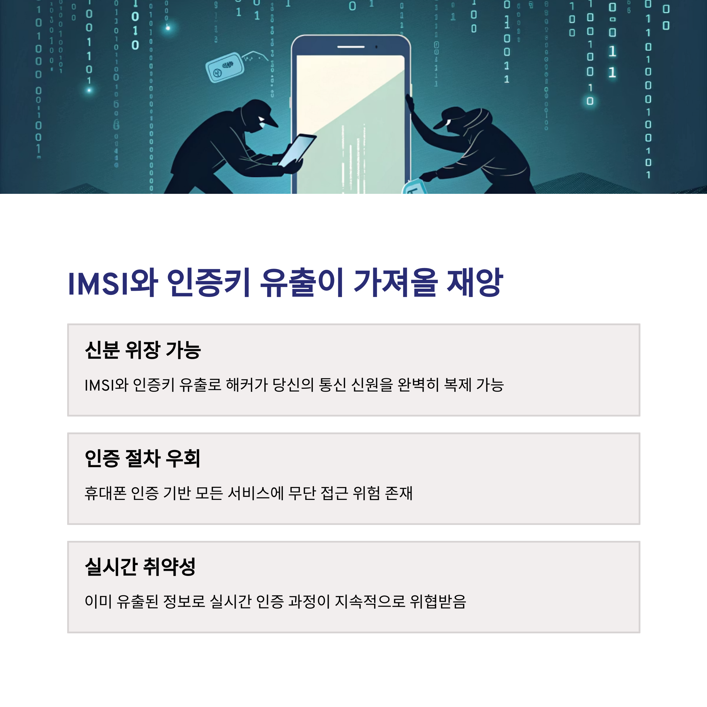 IMSI와 인증키가 탈취되면, 피해자는 스스로 인지조차 못한 채 공격당할 수 있어요.
