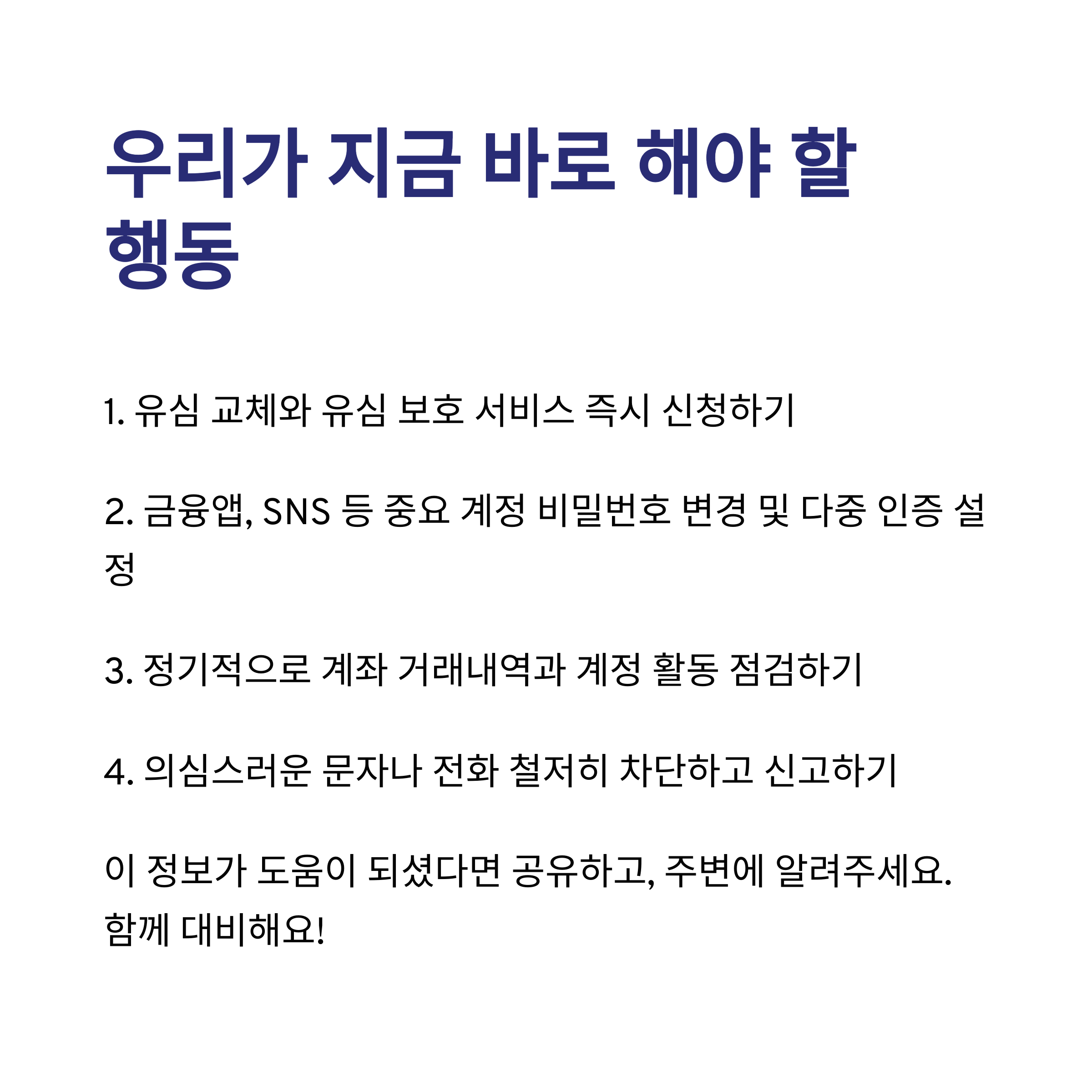 - 본인 명의 계좌 및 서비스 목록 주기적으로 확인하기